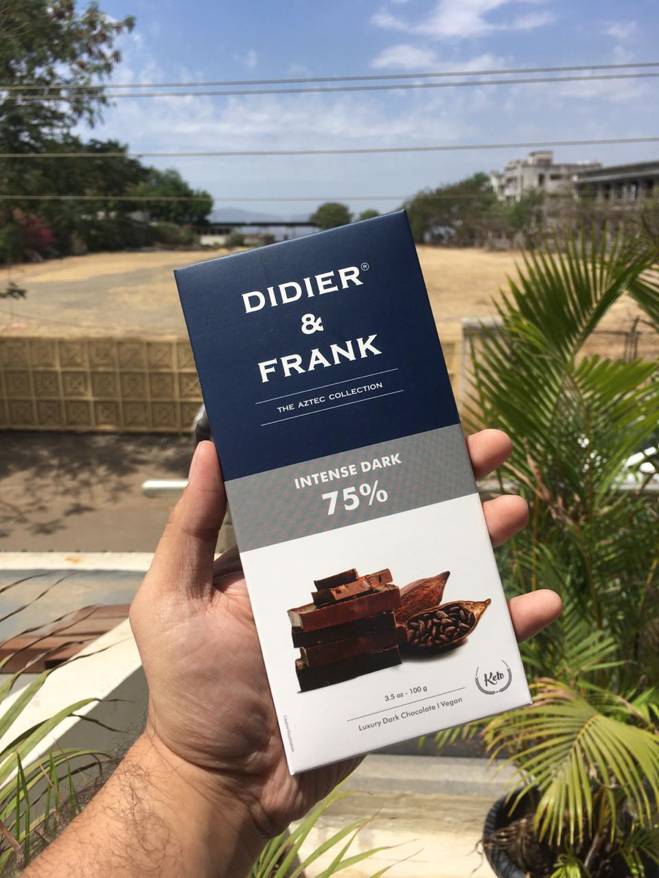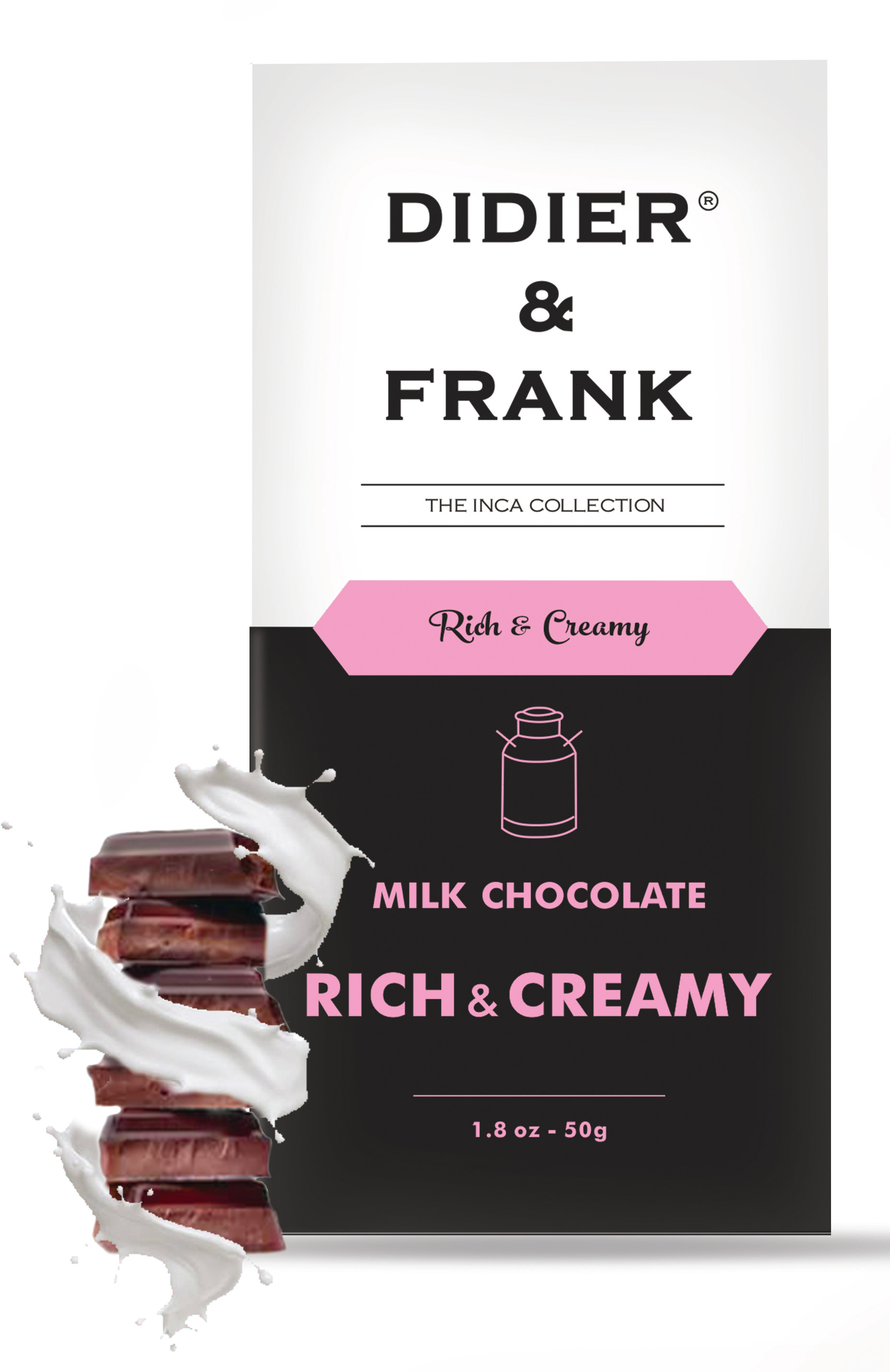 Chocolate Bar packaging after production. Matt paper stock and spot gloss on the image area.