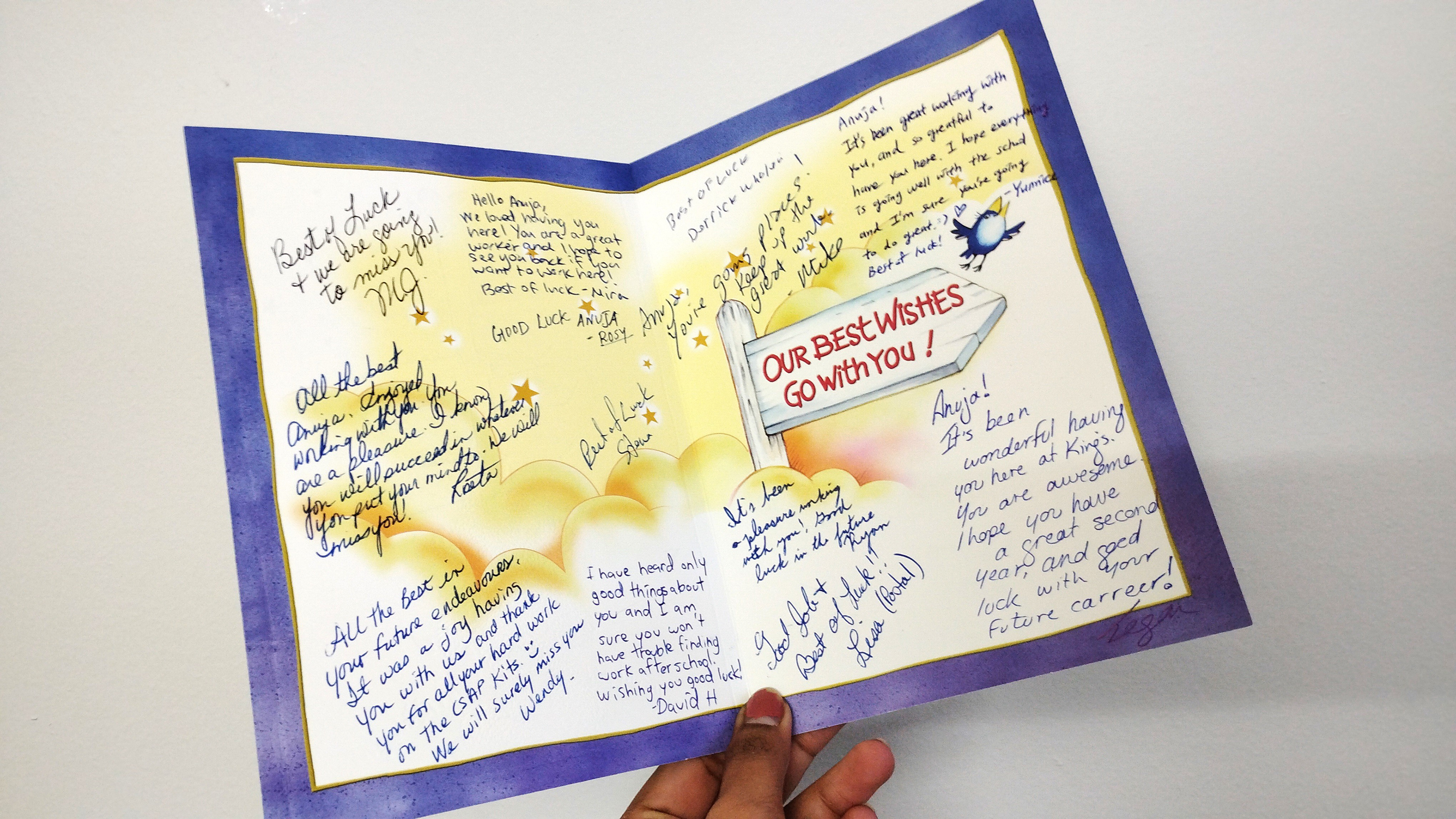 "We loved having you here. You are a great worker. I hope to see you back if you want to work here!"
